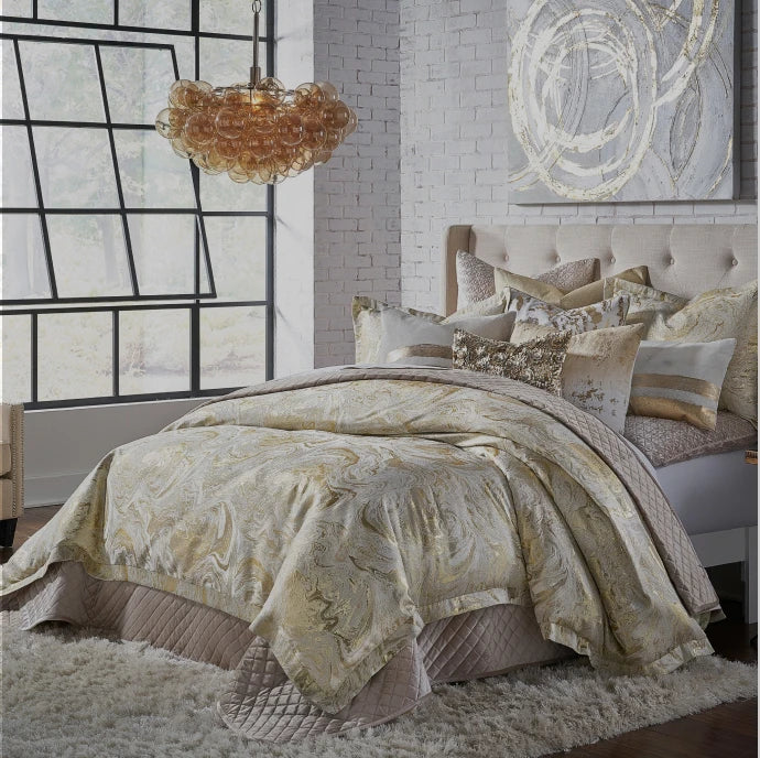 "The RAINADVTQ‑IVGD ivory & gold ombré duvet is gorgeous in person. The foil print shimmers just enough without being overdone."
