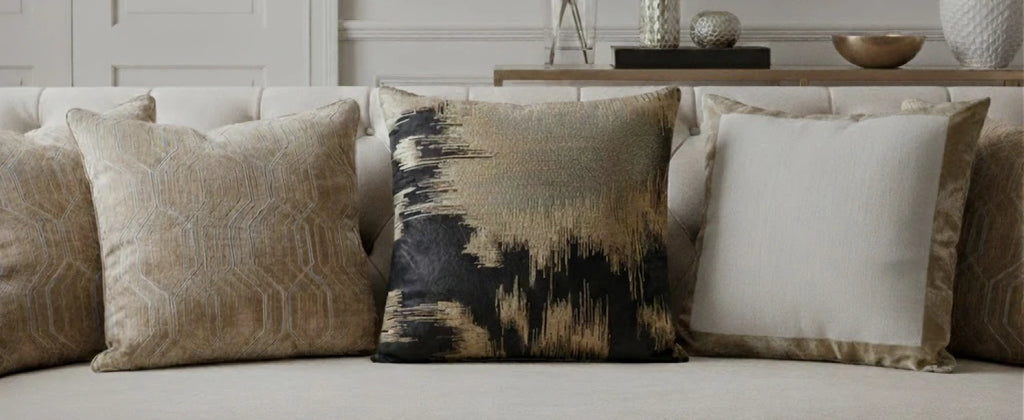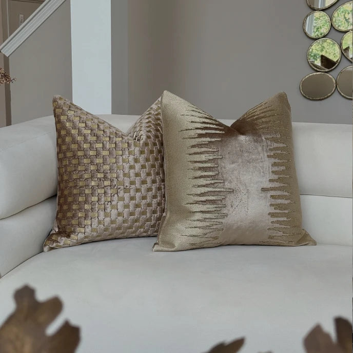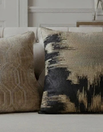 "I’m obsessed with the Noah Grey Gold Velvet Pillow (24″×24″). The velvet is ultra-soft and the gold piping adds a subtle, luxurious accent. It’s the perfect finishing touch for my charcoal sofa."