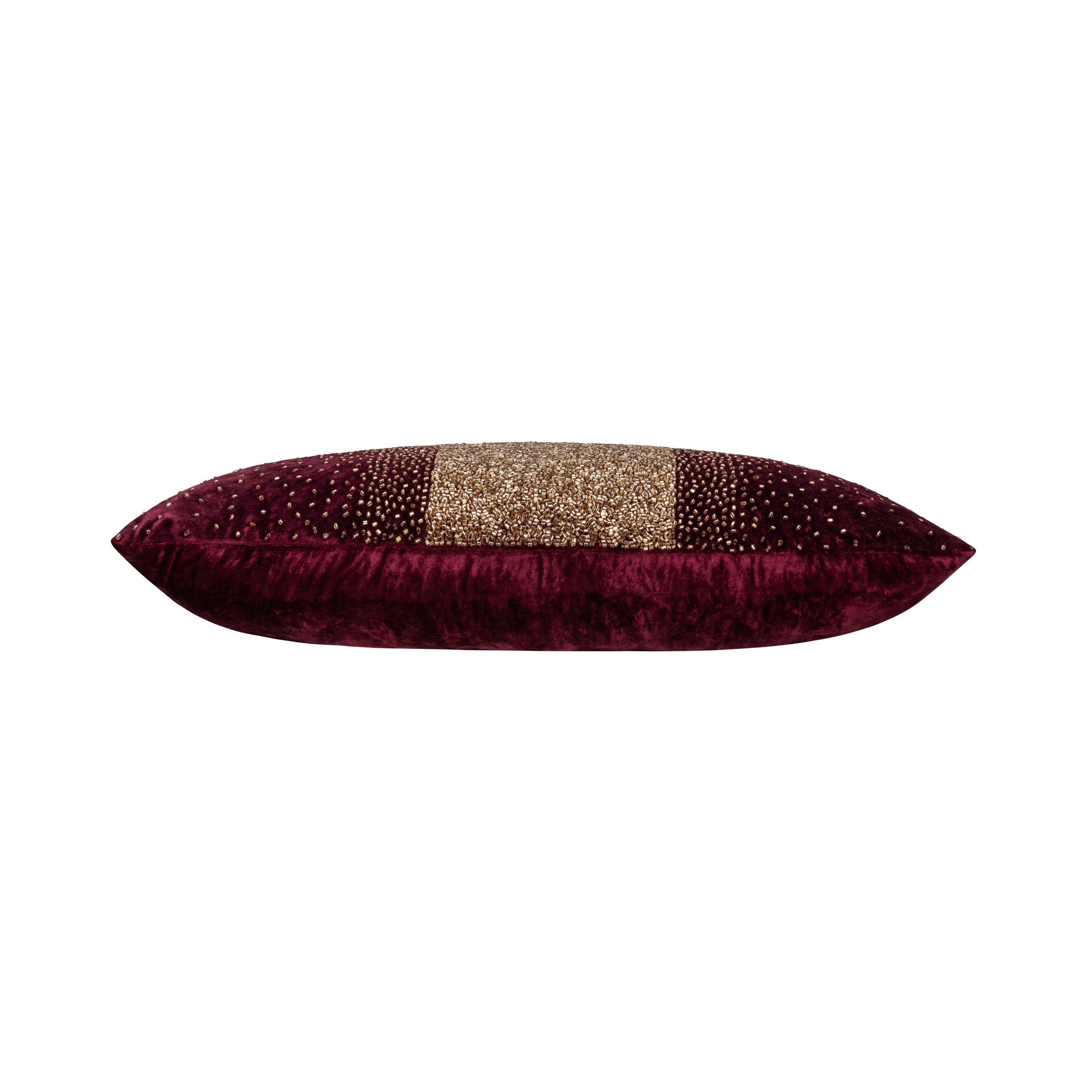 Add a touch of festive elegance to your home with our stunning Burgundy Gold Beaded Holiday Pillow! Crafted from plush velvet with a striking design featuring burgundy velvet adorned with gold studs and a bold gold center, this pillow is a chic addition to any holiday decor. Part of our Holiday Collection, it's perfect for dressing up your sofa, accent chair, or bed this season. Elevate your holiday ambiance with this sophisticated, eye-catching accent!