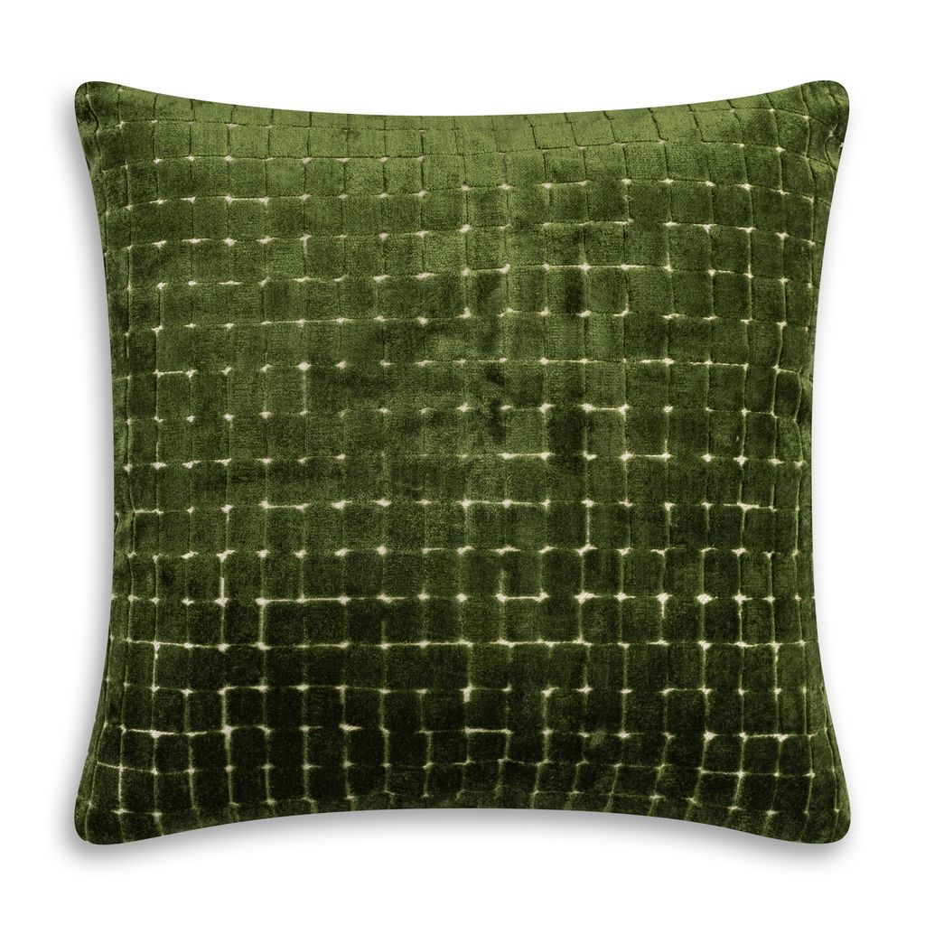 This elegant pillow features a textured, grid-patterned design with a green base. The intricate pattern adds a touch of sophistication to any room, making it perfect for adding a cozy yet stylish vibe to your home decor.