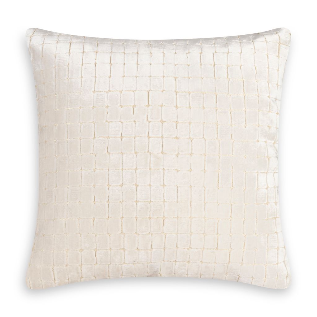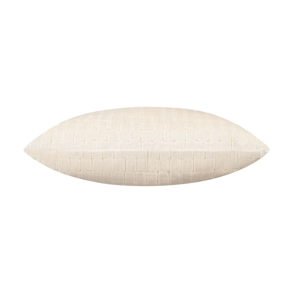 This elegant pillow features a textured, grid-patterned design with a soft cream base. The intricate pattern adds a touch of sophistication to any room, making it perfect for adding a cozy yet stylish vibe to your home decor.