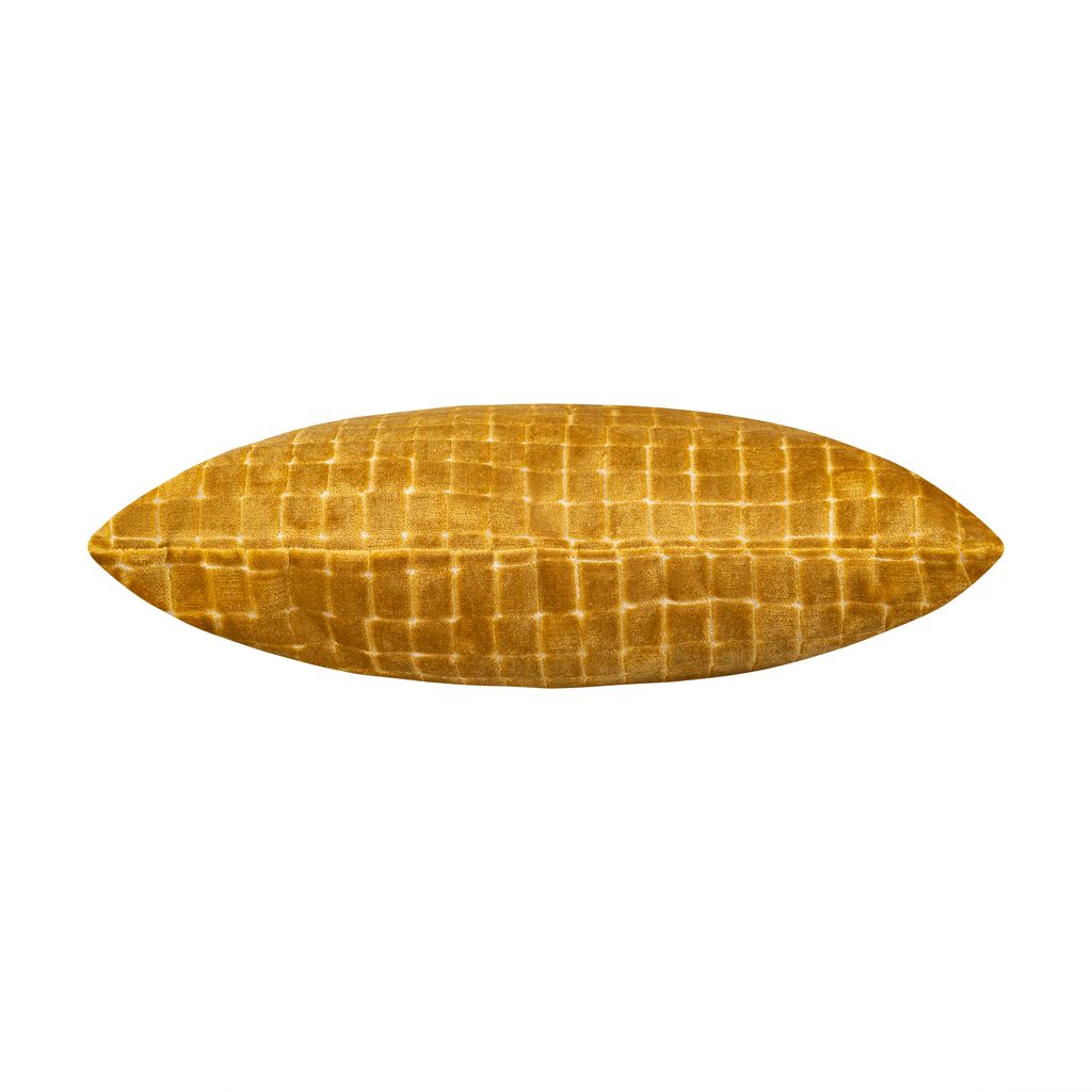 This elegant pillow features a textured, grid-patterned design with a mustard base. The intricate pattern adds a touch of sophistication to any room, making it perfect for adding a cozy yet stylish vibe to your home decor.